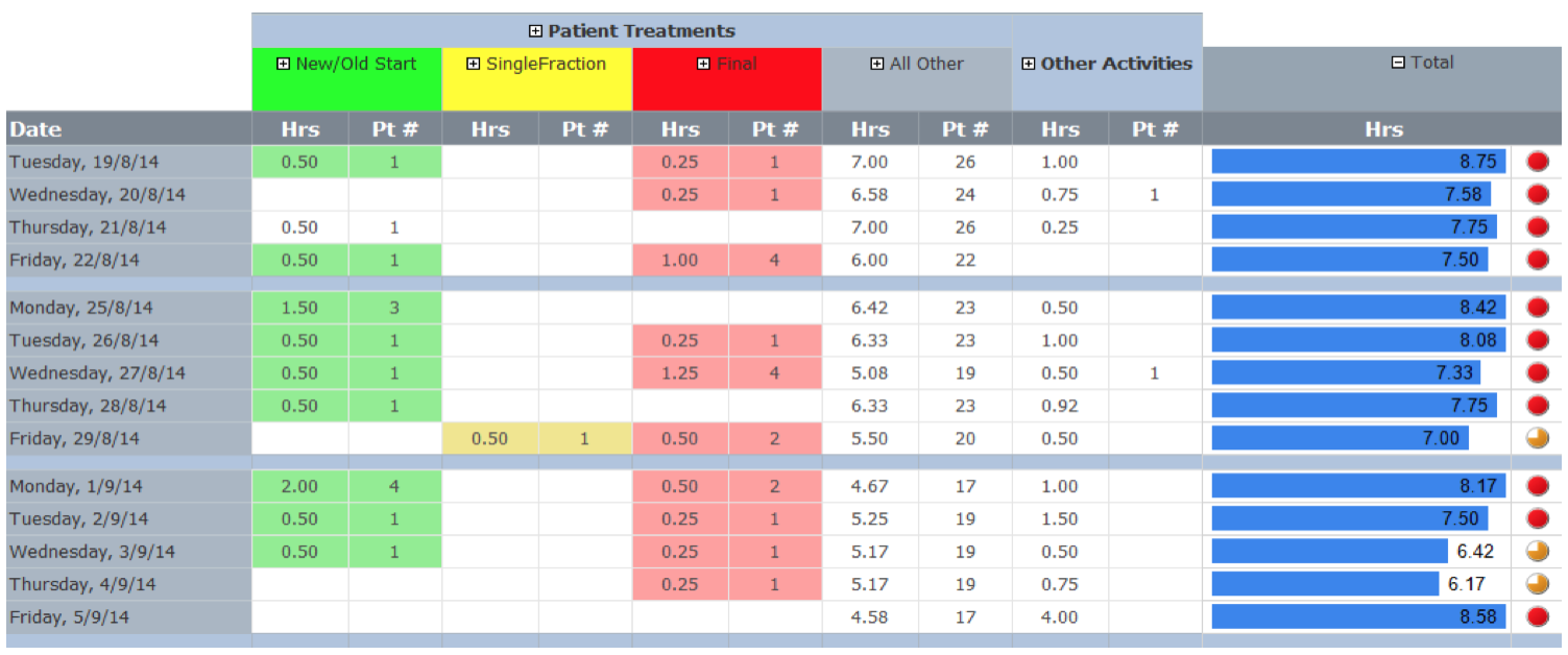 The Planning Workflow Dashboard is a comprehensive Radiation Therapy solution to assist staff in managing the planning room throughput and workload. Leveraging all data from the Information system, (such as the ARIA care-path), the report can provide complete visualisation of every patients’ journey, highlighting potential slippage and key milestones. This dashboard can completely replace the traditional “whiteboard” approach, improving communication across the department whilst minimising lost time.
